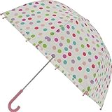 | A cute umbrella for your little one from Pluie Pluie. Polka dots are fun and so is this little girls umbrella with its pink, green, purple and blue polka dots on a white background and pink handle. Pluie Pluie umbrellas are sized for kids and open and close safely and easily due to the "no pinch" design. ...Read